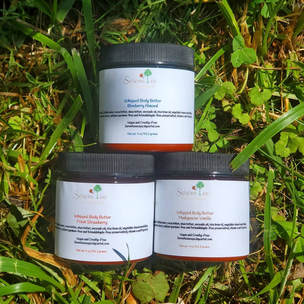 Our whipped body butter glides on smooth and soaks into skin without a greasy feeling. Can also be used in hair! This is a natural product and separation can occur in extreme temperatures. Keep in a cool place away from direct heat.